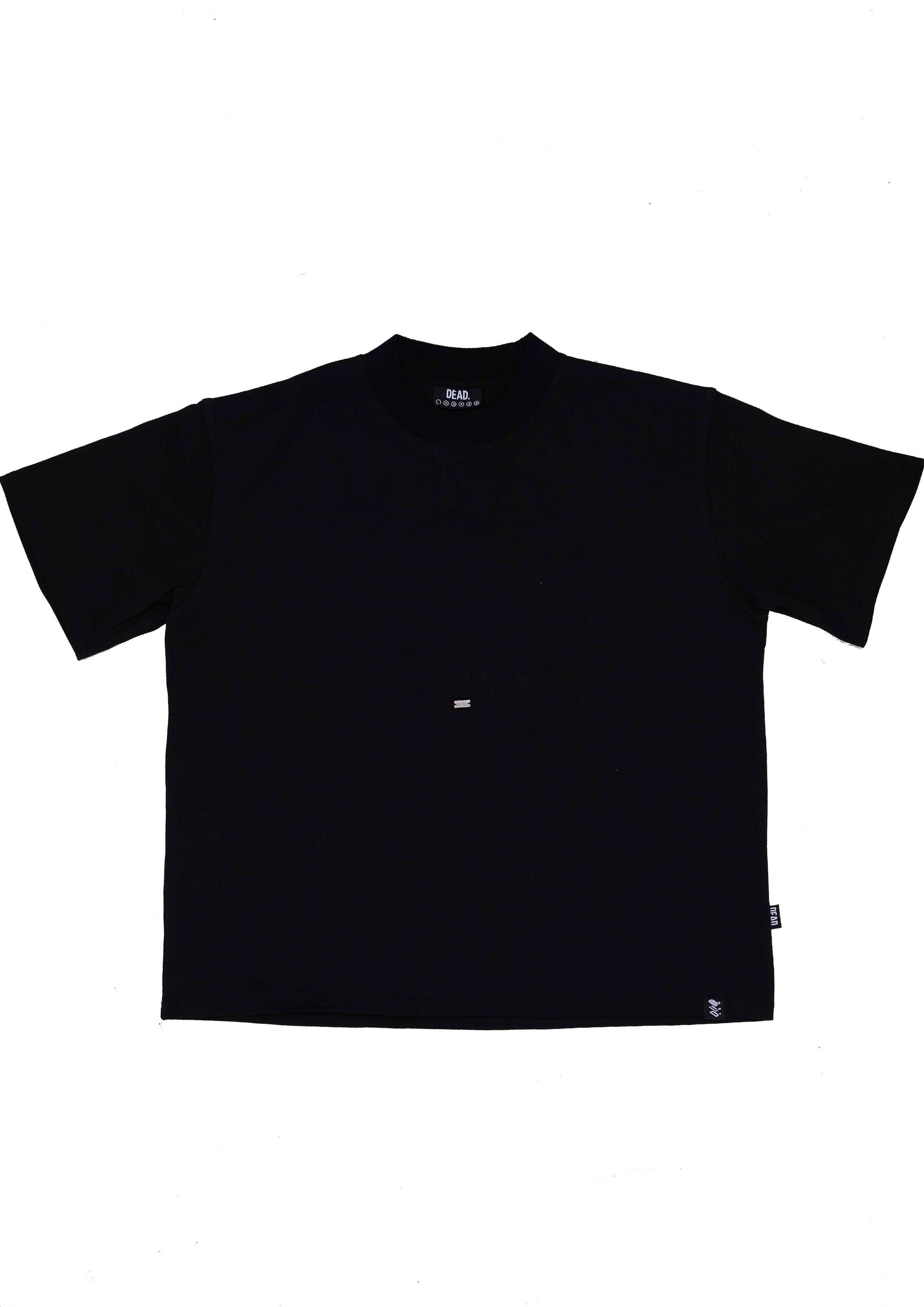 Our Minimal t-shirt with our DEAD. stainless steel detail in the center.