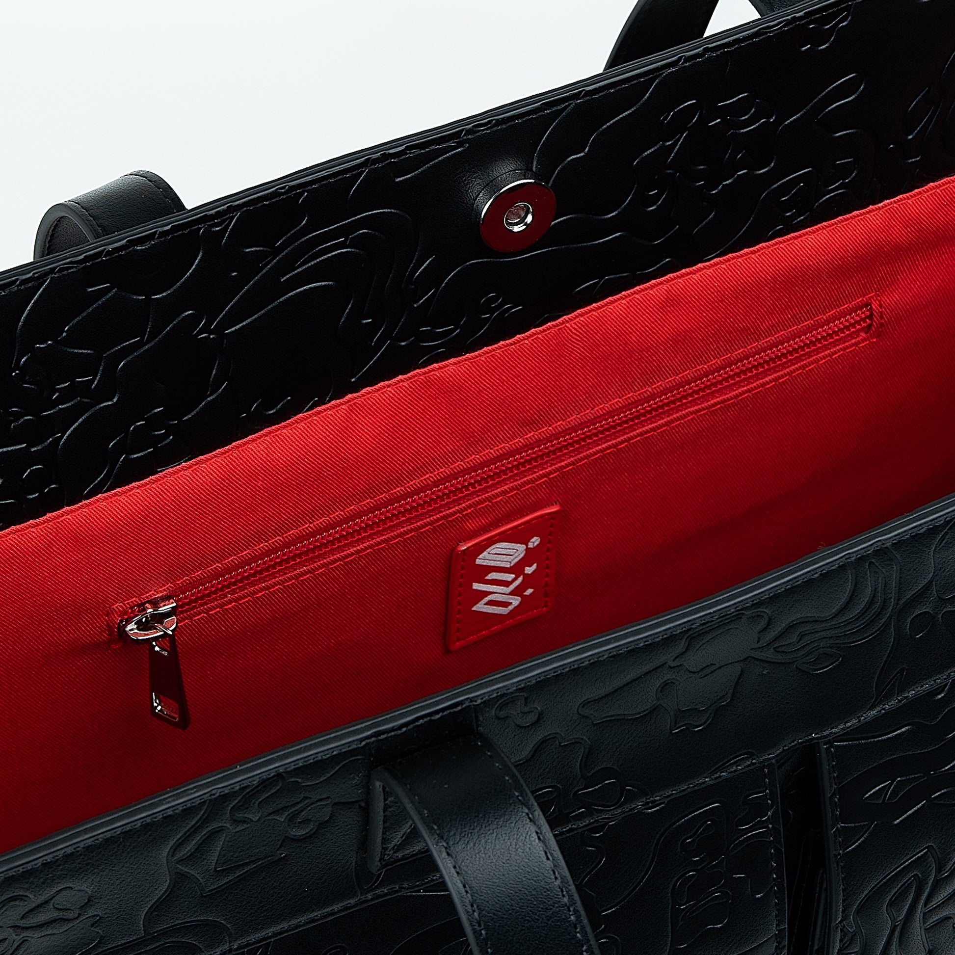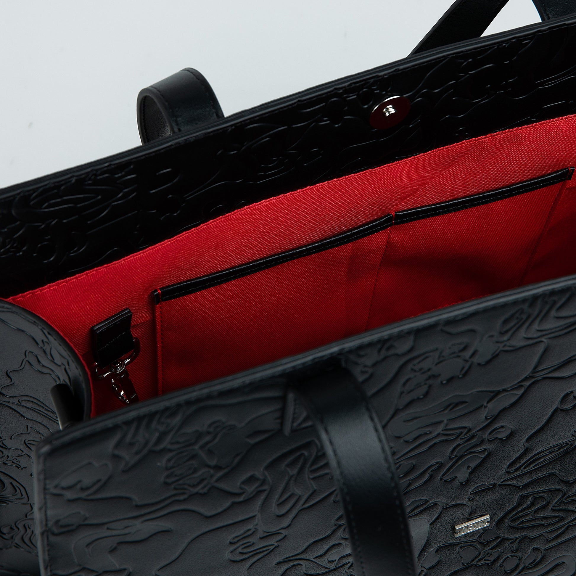 Your everyday essential bag for all occasions. Immaculately embossed with our unique DEAD. camo, paired with a luxurious red interior. The bag does not have a zip however, has a magnetic closing clip in order to maintain the shape. The bag has two pockets which are closed by a magnetic clip too and it also comes with an extra cross body strap.