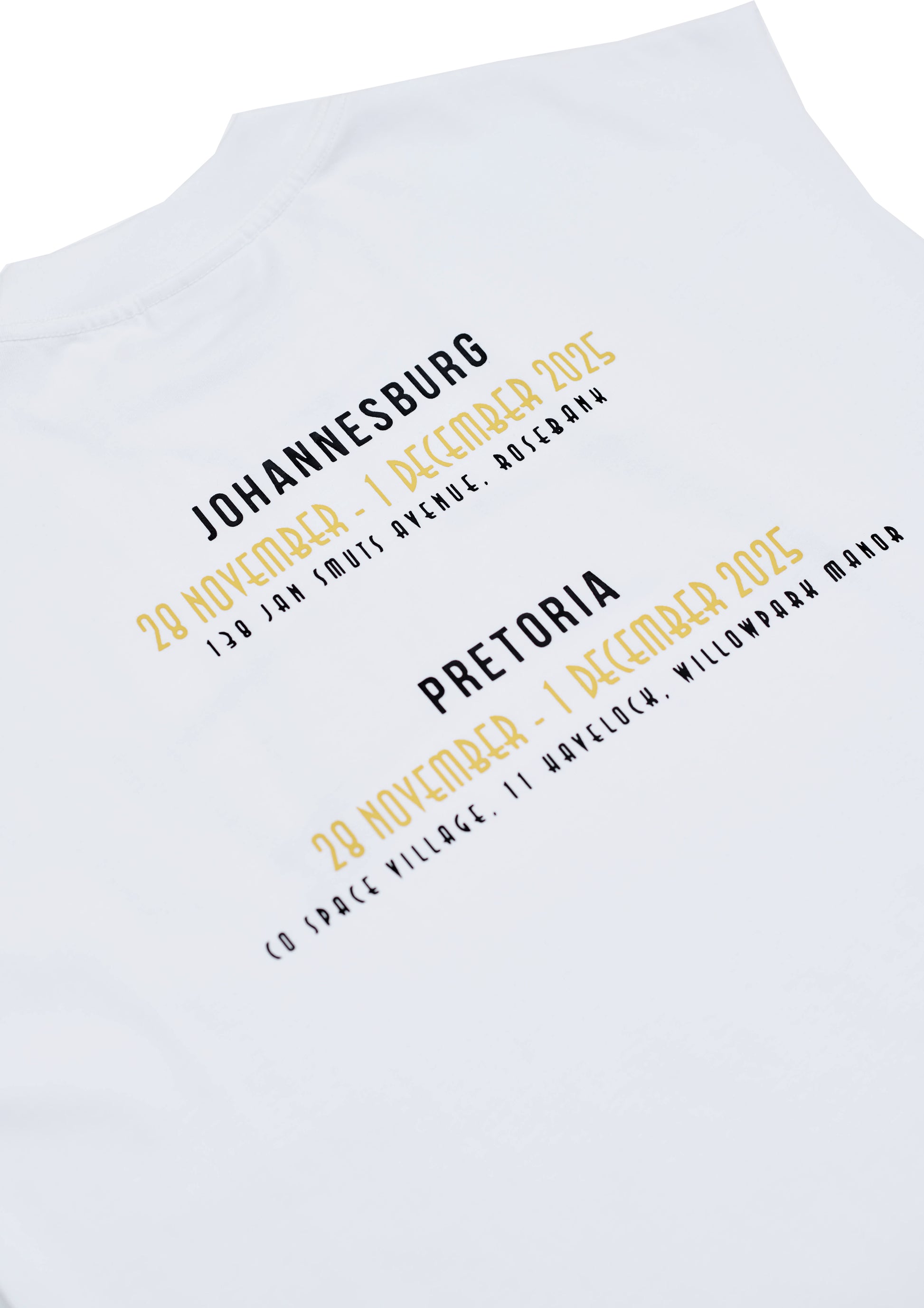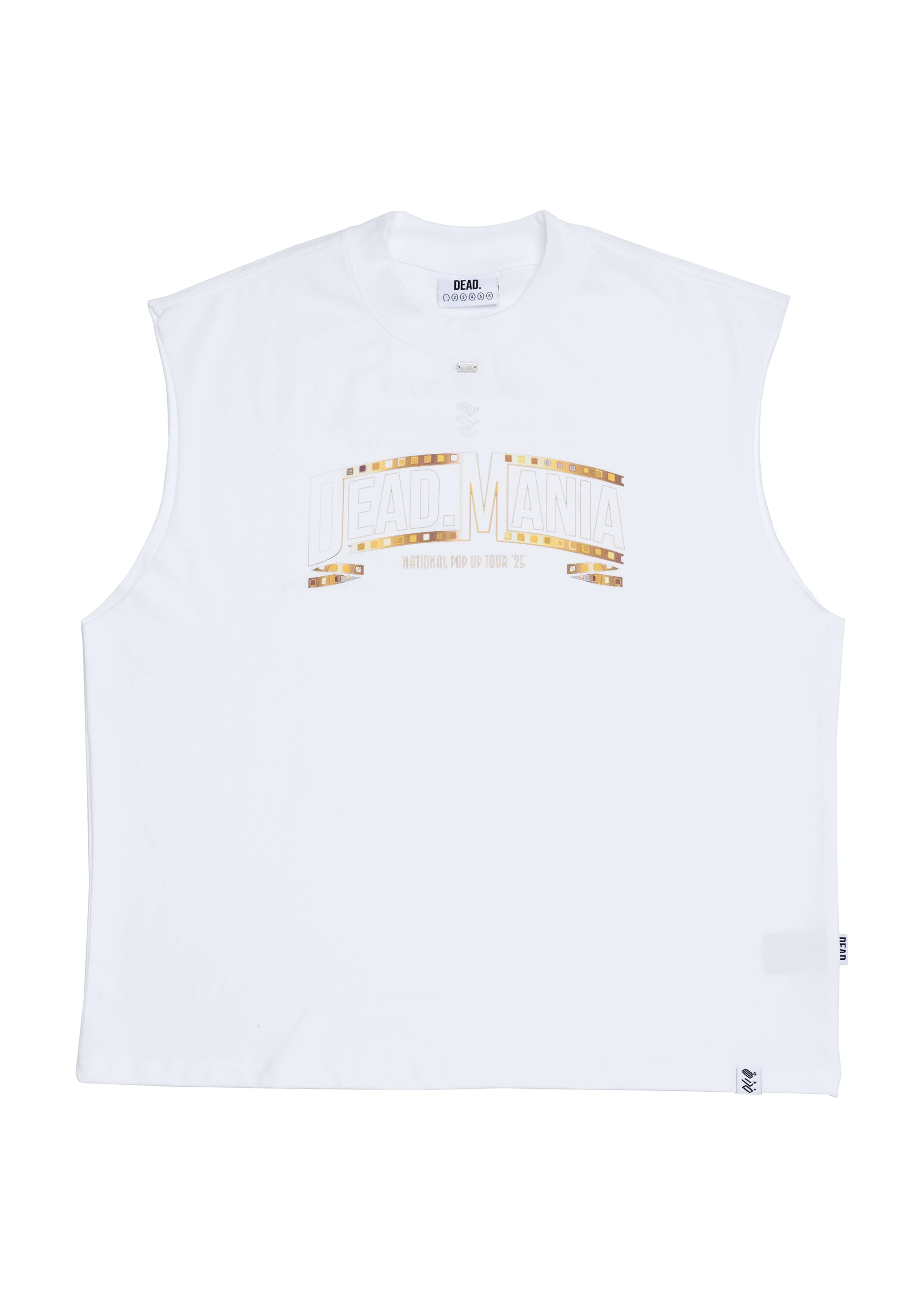 Our DEAD. Mania Sleeveless T-shirt which has our DEAD. mania 2025 Logo at the front along with our flaship store address and pick up point address at the back. Both the details are screen printed.
