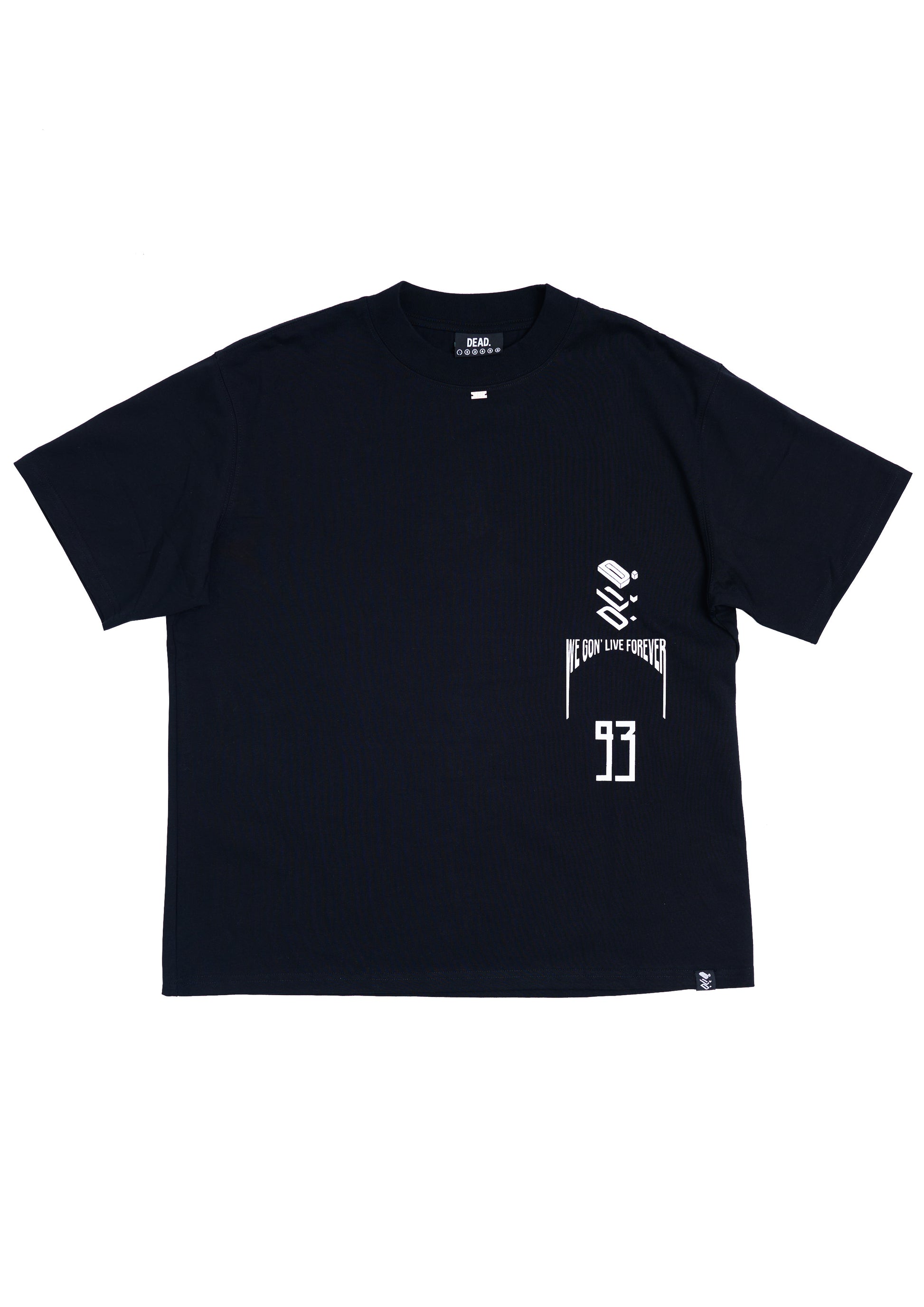 Our Logo Stack t-shirt with our trademark logos stacked up under each other on the front left in high quality screen print in black. The t-shirt is finished with a stainless steel DEAD. detail in front, just below the thick collar ribbing.