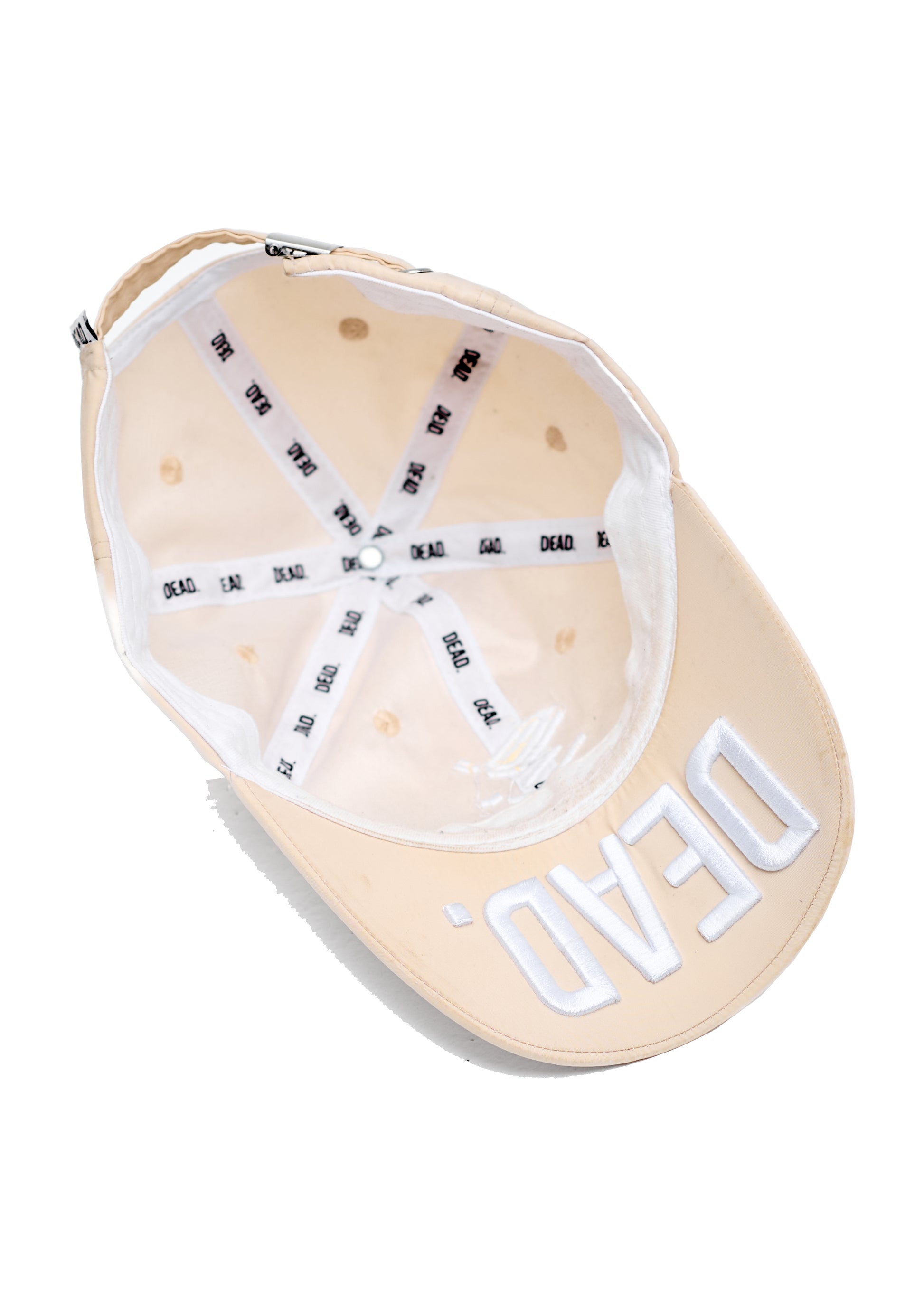 Embroidered with DEAD.'s recognisable logo to the front, this baseball cap is crafted in cream white fabrication. With an adjustable strap to the rear, the laid-back style. Underneath the peak, we have our DEAD. word logo in 3D embroidery finishes along with '93 on the side panel.